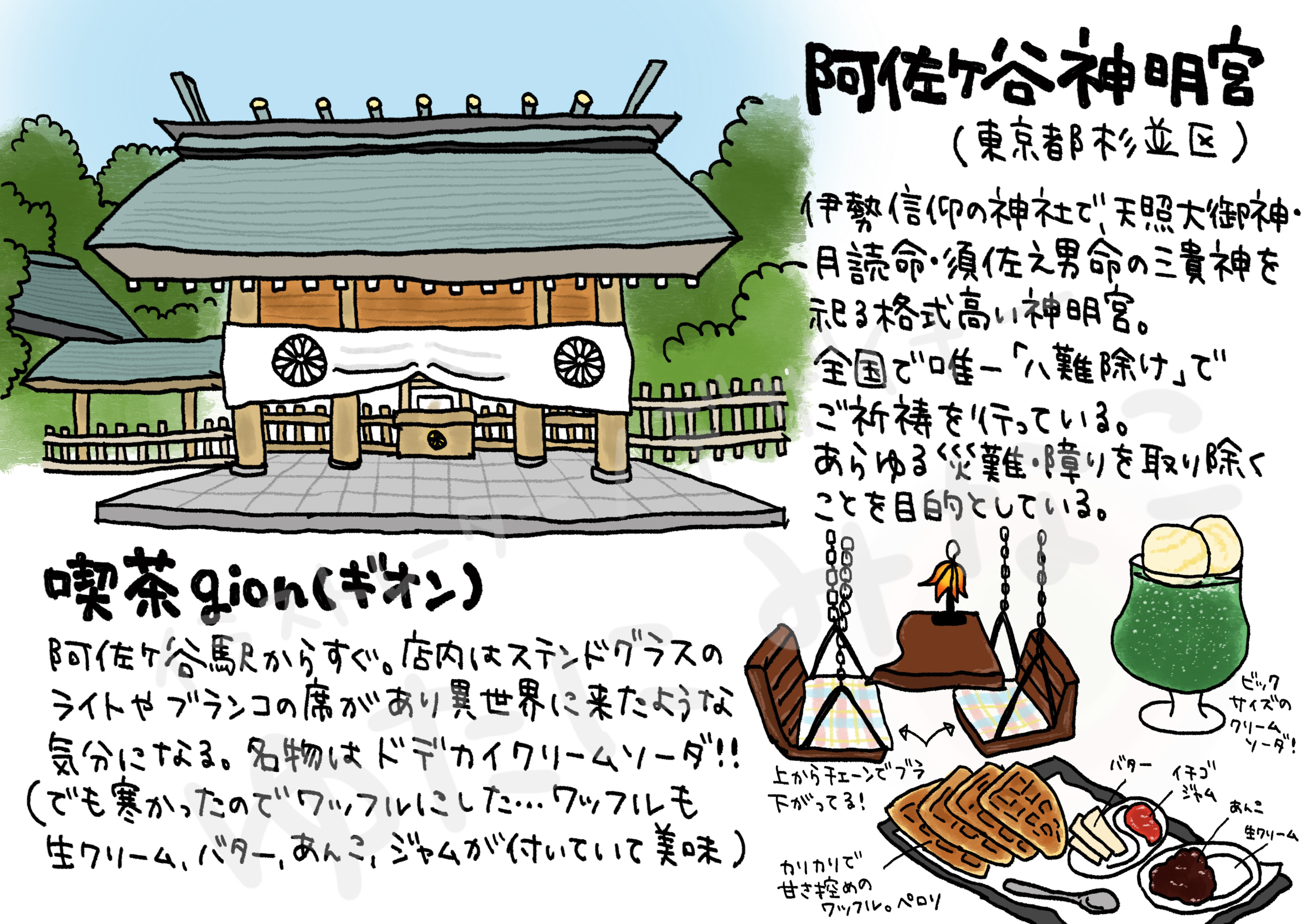 阿佐ヶ谷明神宮とてもよかったです。そしてそのすぐ近くにあった喫茶ギオンもおとぎ話のような空間で店内を見ているだけでも楽しかったです。